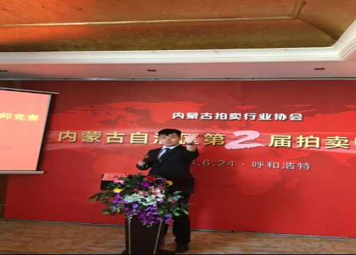 內(nèi)蒙古凱德拍賣有限公司牛然韜榮獲內(nèi)蒙古第二屆拍賣師競(jìng)賽第一名 內(nèi)蒙古自治區(qū)第二屆拍賣師競(jìng)賽于2016年6月24日上午在呼和浩特市萬戴國際酒店舉行,來自全自治區(qū)的7名拍賣師參加了比賽,本次大賽旨在加強(qiáng)學(xué)習(xí)交流,展示拍賣師主持風(fēng)采,提高自治區(qū)拍賣師隊(duì)伍的整體素質(zhì),同時(shí)選拔代表內(nèi)蒙古自治區(qū)參加全國大賽的選手。
