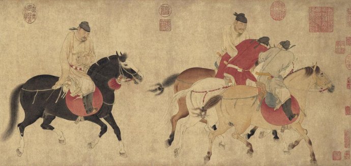 明確的收藏記錄自明代開始。卷中鈐有“乾隆御覽之寶”(弘歷)、“石渠定鑒”(弘歷)、“寶笈重編”(弘歷)、“嘉慶御覽之寶”(颙琰)“干清宮鑒藏寶”(弘歷)、“宣統(tǒng)御覽之寶”(溥儀)等;卷尾鈐有“乾隆鑒賞”(弘歷)、“三希堂精鑒璽”(弘歷)、“宜子孫”(弘歷);后隔水上鈐有“宣統(tǒng)鑒賞”(溥儀)、“無逸齋精鑒璽”(溥儀),顯示乾隆、嘉慶、宣統(tǒng)曾收藏該作品。 該作品以咨詢價上拍。當晚,該作品以6800萬元起拍,價格迅速升至8000萬元,隨后價格以100萬元一次交替上升。經(jīng)超過40分鐘、150余輪競價,最終以2.64億元人民幣落槌,按照15%的傭金計算,最終成交價為3.036億元人民幣。